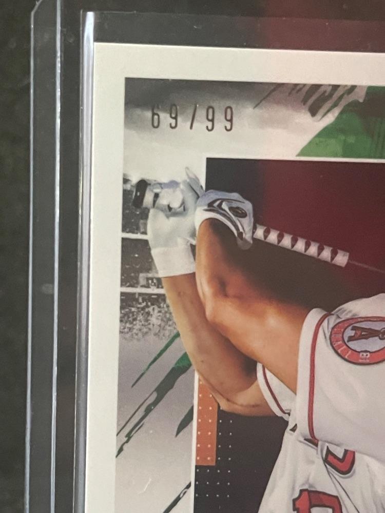 It is numbered 69/99. This card is unripped and has another card inside. Maybe an Ohtani Auto? Who knows? Buy a spot and have a chance tot find out!